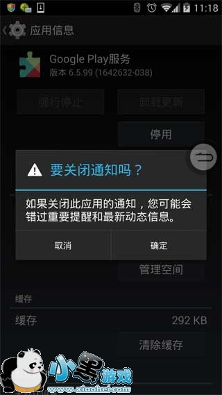 第二个方法:手机没有出现系统更新提示的时候。在设置中找到应用(手机不同设置里的名字也不同),进入应用内,可以左右和上下滑动,然后在全部应用中找到google play服务,点击google play服务进入应用信息管理页面,把默认显示通知的勾去掉(如果显示通知勾上的有新系统版本的时候提示),会弹出提示,点击确定。这样系统更新就不会再提示了。(建议取消后重启)