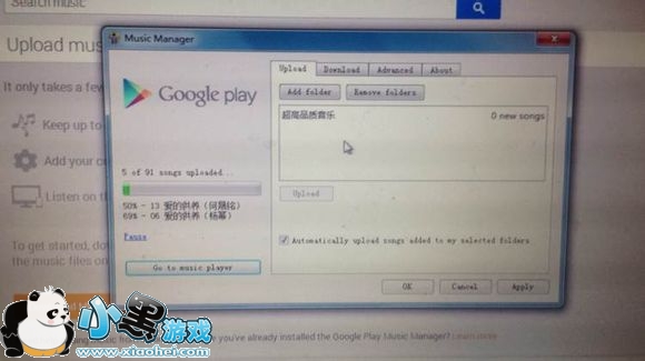 然后把你喜欢的音乐放在一个文件夹里添加进来,之后控件会自动开始上传到谷歌服务器。‘