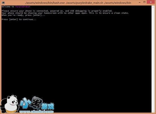 purpledrake_windows ROOT工具这个没什么太多需要谈的。其实就是常规的一键Root。连接上手机一路回车即可。