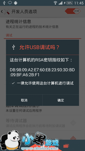 第二步:在手机设置中的「开发人员选项」中开启「USB调试」,而后使用USB线将手机连接电脑。部分设备还需要允许 USB 调试授权。