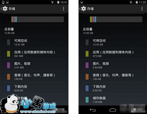 存储空间的占用。因为安装时就进行了编译,必然在文件体积上有所增加,通过与 Dalvik 模式的对比,ART 模式下的各类应用实际占用存储空间均有了 20% 左右的上涨,这对于多为 16G 的 Android 设备而言可不是什么好消息。(左边为 Dalvik 模式,右边为 ART 模式)