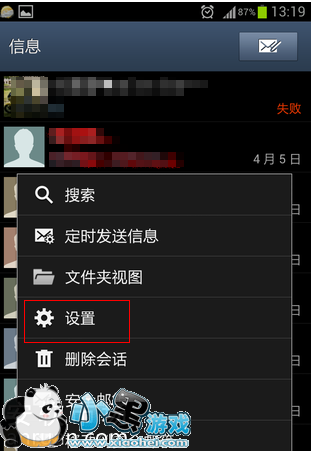 2、打开手机短信的设置。