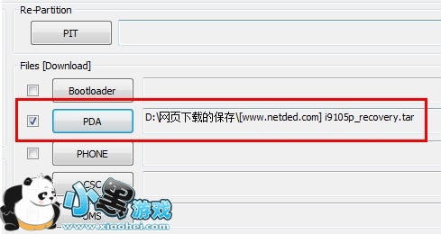 在这里要注意的是:有些rom包解压后,上面(PDA,PHONE,CSC,PIT,BootLoader)几项都有的话,都选上,有些是一体包,只有一个.tar的包,这个时候只选择PDA这一项就可以了,不同的rom有所不同,至少PDA这一项是必选的,所以大家不要少选了。
