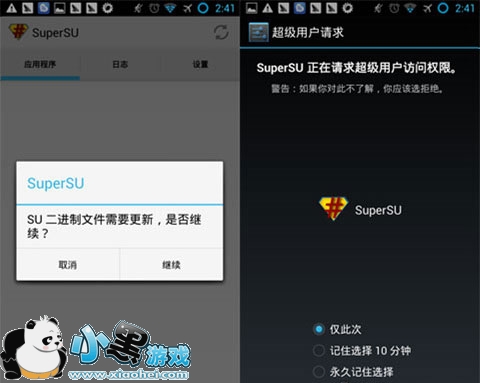 我们这次要用到的APP叫做《SuperSU》,是一款专门用来管理手机权限的APP,安装好以后第一次驱动时要下载二进制文件,并且赋予它Root权限,然后就可以使用了。