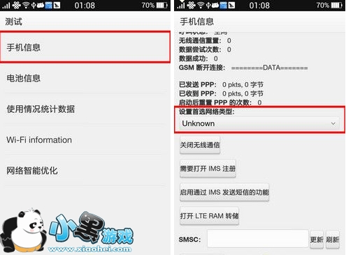 修改文件建好之后,退出RE管理器。打开手机拨号界面,输入*#*#4636#*#*,进入测试界面,点击进入手机信息选项,把首选网络类型从Unknown修改为WCDMA only,保存退出,重启手机。