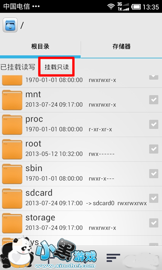 进入RE管理器,我们点击右上角的“挂载读写”按钮,点击之后,按钮文字会变成“挂载只读”,这便证明RE管理器成功挂载读写。只有成功挂载之后,我们才能进行以下操作,所以这步是最基础的,也是最重要的步骤。
