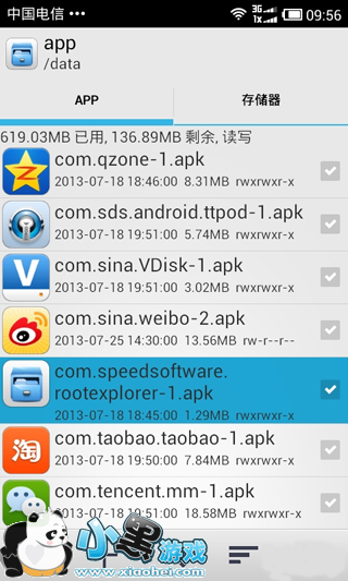 使用RE管理器将进入到DATA/APP目录,这个便是应用存储目录,进入到该目录,你可以看到自己安装的所有应用(系统应用除外,系统应用在SYSTEM/APP目录)。