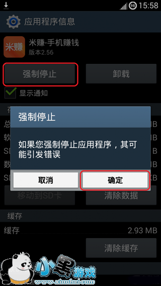 点击「应用程序信息」后出现程序信息界面,点击强制停止,下载也随之停止了。