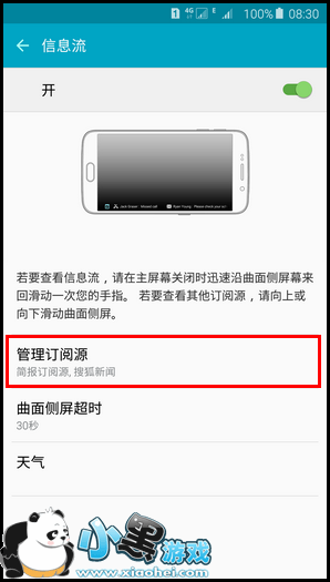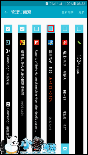 7.勾选需要在侧屏上显示通知的项目。(注:向左滑动屏幕,点击【下载订阅源】可以下载其他您感兴趣的项目。)