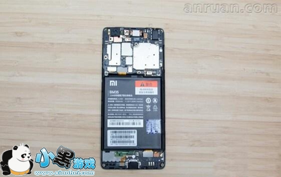 小米4c为了减轻机身重量,固定板为铝镁合金材质,主板正面的主要芯片虽然没有覆盖金属屏蔽罩,但在固定板上均留出了相应位置,骁龙808 CPU处有海绵垫减震和散热贴纸。另外小米4C在电池容量方面相比4I有些缩水,容量只有3080mAh,不过这款手机的省电效果比较好,相信可以弥补这一不足了。