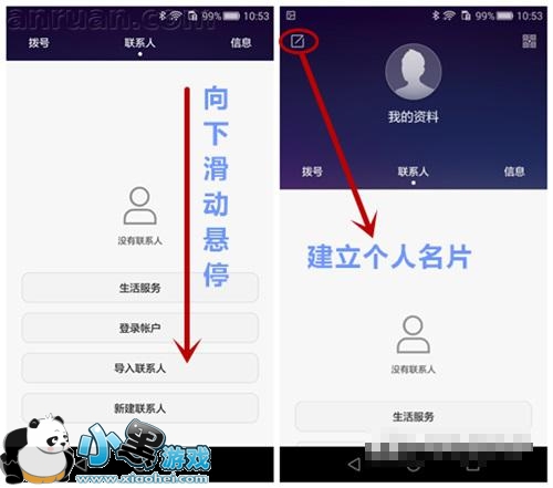 打开联系人——>按住向下拉动悬停——>点击添加——>输入个人信息即可。同时还可以生成一个名片二维码,在出席商务场合,省去了纸质名片,时下流行扫一扫,轻松建立合作关系。