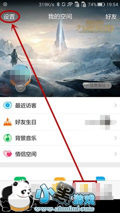Step1、首先进入自己QQ空间里面,点击右下角的我的空间,再选择左上角设置按钮;