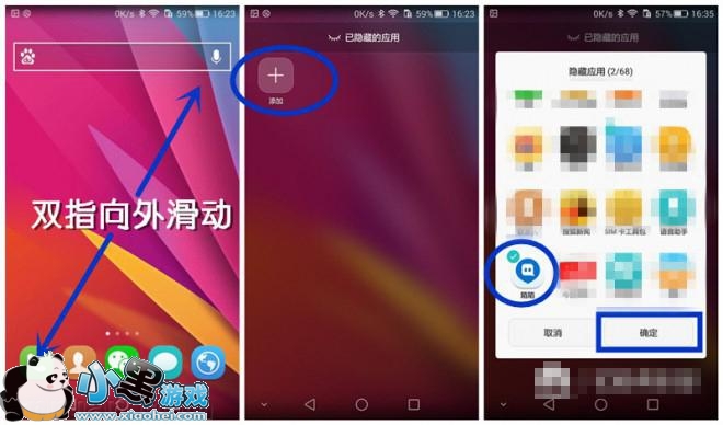 任意桌面双指向外滑动——点击添加需要隐藏的应用,隐藏好之后,桌面上甚至是在全局搜索里已经找不到了。