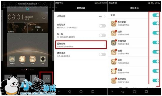 5、桌面角标逼死处女座?其实它是可以去掉的。长按桌面空白处进入桌面编辑模式,选择更多设置,点开图标角标,可以关掉烦人的角标哦。