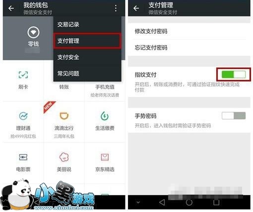 以微信为例,设置好指纹解锁后,进入微信——>我——>钱包——>支付管理——>指纹支付,开启,需输入支付密码验证指纹。比如用微信给小伙伴们发个红包,省去了输入密码的繁琐,按住指纹,识别即可。