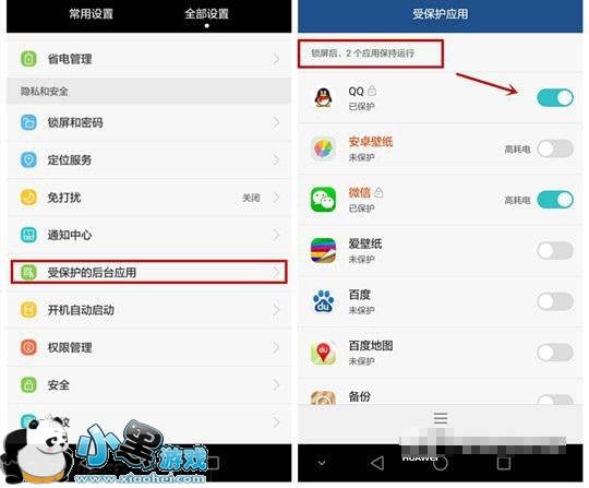 手机中一定有某几个软件需要时刻保持运行,比如通讯软件,不然的话可能会错过重要信息。设置-受保护的后台,开启必备的通讯软件。