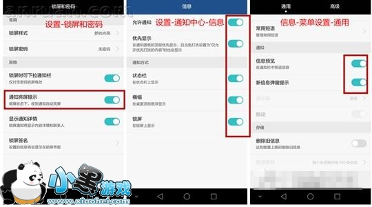 手机最重要的就是收发讯息,有朋友消息延迟、收不到?那是因为你搞错啦——下面的步骤仔细看好:设置-通知中心-打开信息提示的所有开关。并且打开设置-锁屏和密码-通知亮屏提示。此外,如果是短信通知,在短信-菜单-设置-打开信息预览和弹窗提示。