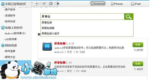 接下来,下载个检测软件,一般来说上网搜搜就会有,没有找到的话就搜个‘测试屏幕纯色壁纸’利用壁纸来检测。不过还是建议安卓手机用软件会好些,iPhone就用壁纸的好点,因为比较方便。
