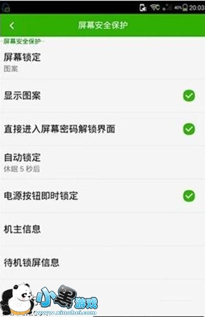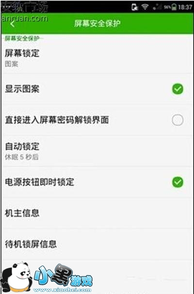 4、勾选:直接进入屏幕密码解锁界面。勾选好后退出设置。