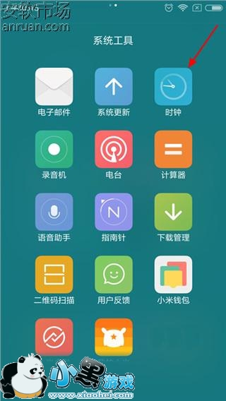 1、在红米Note3桌面上找到【系统工具】应用,点击进入找到【时钟】点击进入,如下图所示: