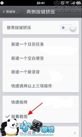 2、开启按键挤压按钮开关,在功能里选择【屏幕截图】