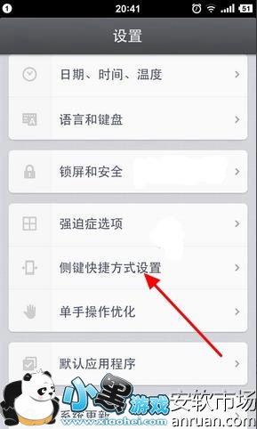 1、进入到锤子T2设置界面,然后找到【侧键快捷方式设置】选项进入: