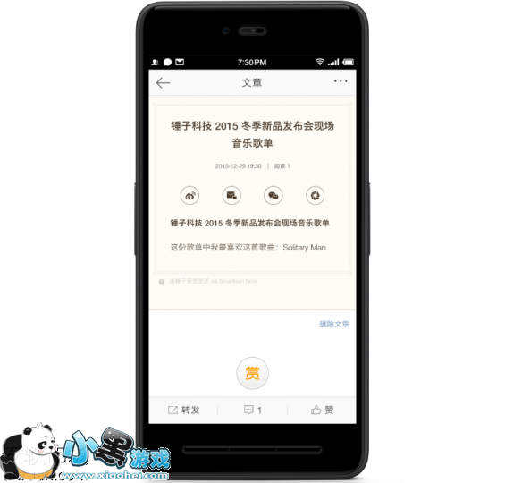 以网页形式分享便签时,选择发送至“新浪微博”,可使用新浪提供的打赏功能;