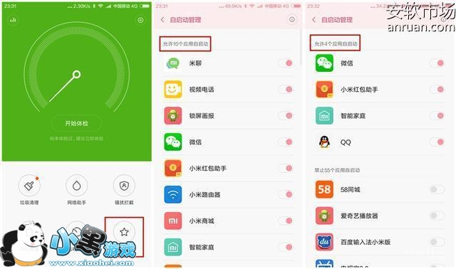 有些应用虽然在一键清理的时候被清理掉了,不过它还会在后台进行自启动,占用我们仅有的运行内存,会对我们手机流畅运行产生影响。对于这个问题,我们可以通过“安全中心”界面中的“授权管理”选项,对安装的软件进行“自启动管理”,只将一些常用的应用设置为允许自启动,其他应用全部禁止即可。