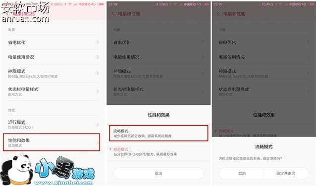 在“设置”选项的“电量和性能”界面,我们可以发现一个“性能和效果”选项,进入之后这里有一个“流畅模式”,切换之后可以提高系统的流畅度,不过这是需要减少或调低部分效果来实现的,经过实际测试,日常使用中和“效果模式”并不会有很明显的差别,对于系统的操作流畅度还是有所加快,比较适合懒人使用,直接进行切换即可。