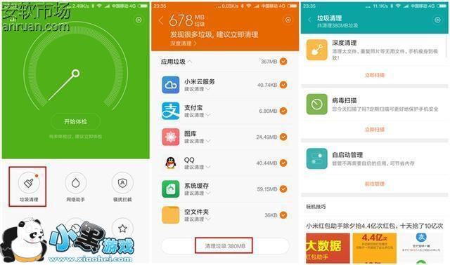 定期对于手机中的垃圾进行清理,也可以让手机保持流畅运行,小米手机的“安全中心”中就已经预置了一个“垃圾清理”选项,点击进入之后系统就会开启自动检测模式,会对搜索到的系统垃圾还进行了分类和清理建议,可以让我们更容易进行选择清理。