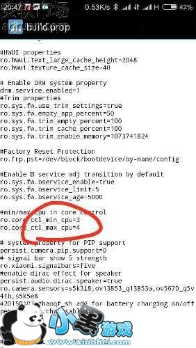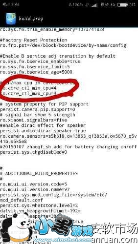 2、然后,从RE管理器进入system/,找到build.prop,用文本编辑器打开,找到ro.core_ctl_min_cpu=2,ro.core_ctl_max_cpu=4这二行代码,如图所示: