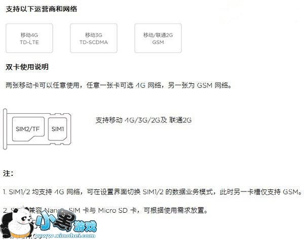 1. SIM1/2 均支持 4G 网络,可在设置界面切换 SIM1/2 的数据业务模式,此时另一卡槽仅支持 GSM。