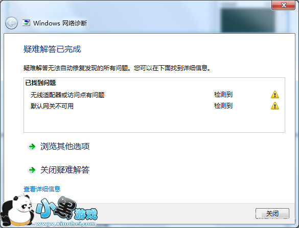 大家知道Wi-Fi上网是“无线网卡+路由器+外网网线”形式,可以连接到Wi-Fi热点只表示连接到了路由器。这种故障的原因大多由于路由器没有连接到网络所致,比如很多共用网络的用户,如果接入网络家庭只是开启路由器,但是没有开启ADSL猫就会出现这种故障。对于Windows 7系统,它自带的诊断组件可以很好地解决:点击连接的热点,然后在打开的窗口点击“诊断“,系统就会轻松找出问题所在,按照屏幕提示即可解决故障(图5)。