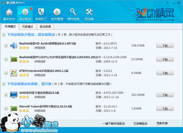 硬件如果出现故障,在排除物理故障的前提下,故障原因大多是由于驱动文件丢失引发的,比如病毒、自己误操作,或者死机导致关键驱动文件损坏等。驱动的检查和更新可以借助驱动精灵完成,它启动后会自动扫描本机所有硬件设备,对于缺少驱动的设备只要点击“一键下载所有驱动”,即可修复驱动故障(图8)。