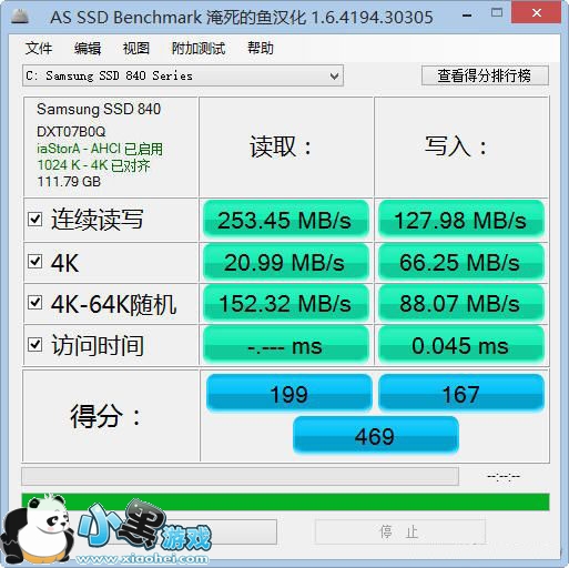 为了测试上述更新(从DXT07B0Q版本升级到DXT08B0Q)对三星SSD的影响有多大,我们特意用AS SSD Benchmark这款工具,对产品升级前后的性能进行了测试(硬盘接口为SATA 2)。AS SSD Benchmark是一款来自德国的SSD专用测试软件,可以轻松地测试出SSD的连续读写、4KB随机读写和响应时间等成绩,并最终给出一个综合得分。最终产品性能提升情况见图3、4。