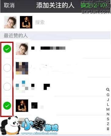 6、选择好您要关注的人之后,点击右上角的确定,一般不能超过10个人;
