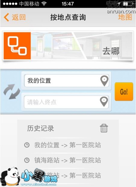 7、按如果想知道当前位置或某出发点到某目的地的车次信息,可以选择按地点查询。