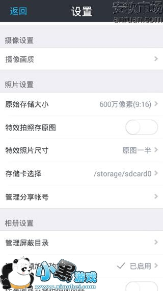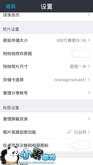 6、再进入相机返回到设置界面,会发现图片的保存路径已经发生了变化。