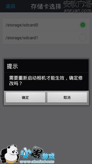 5、当存储路径改变了以后,魅拍相机会提示你只要重新启动相机才会生效,点击确定按钮即可,如下图。