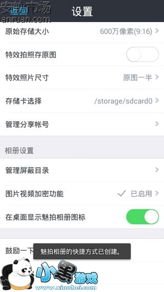 4、当图标被成功开启以后,魅拍相机会有一个“魅拍相册的快捷方式已创建”的消息提醒,这样快捷图标的创建工作也就完成了。
