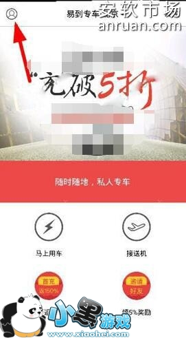 1、首先,下载小黑市场最新版的易到用车,打开易到用车后,点击左上角的头像