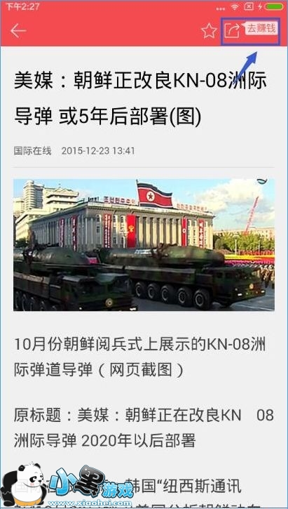 2、在新闻的详情页面中,点击右上角的分享去赚钱按钮;