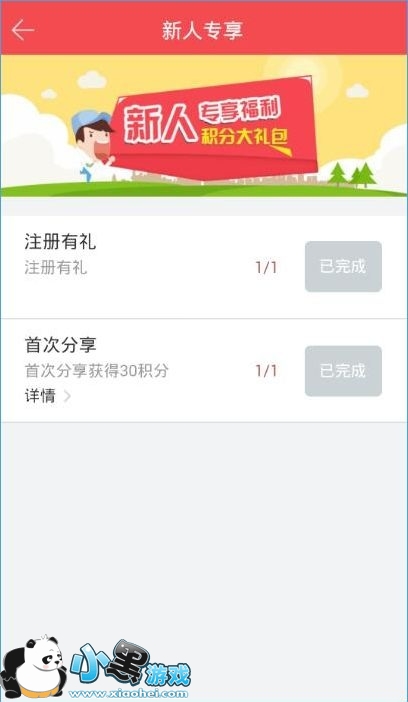 5、在新人专享中,用户可以通过注册有礼和首次分享来获得积分,分别为30积分哟。