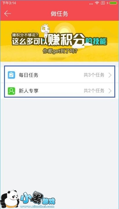 3、在做任务页面中,用户可通过完成每日任务和新人专享任务来赚积分;