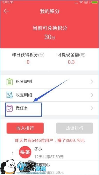 2、在我的积分界面,点击做任务即可快速赚积分;