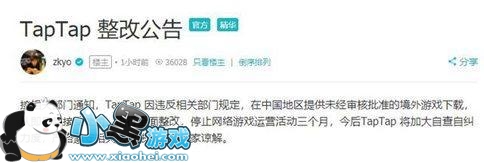 接相关部门通知,TapTap 因违反相关部门规定,在中国地区提供未经审核批准的境外游戏下载,从即日起接受处罚,进行全面整改,停止网络游戏运营活动三个月,今后 TapTap 将加大自查自纠力度,严格遵守相关法律法规,望玩家谅解。