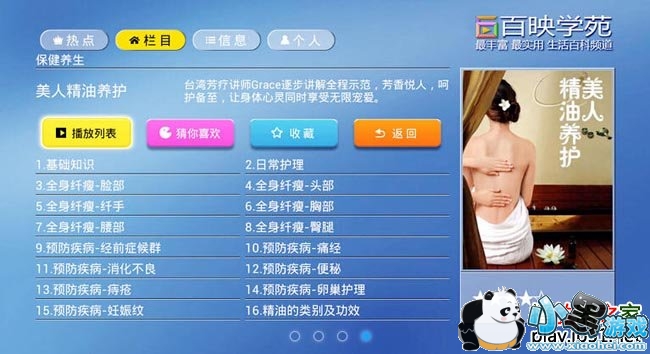 保健养生TV版秉承和发扬传统养生文化理念,由武学名师、养生医学与养生运动专家讲授专业理疗保健手法。其中既有优秀养生功法绝学传授,也有中医养生理疗之法、按摩手法的现场示教……充分满足现代人养生保健之需。