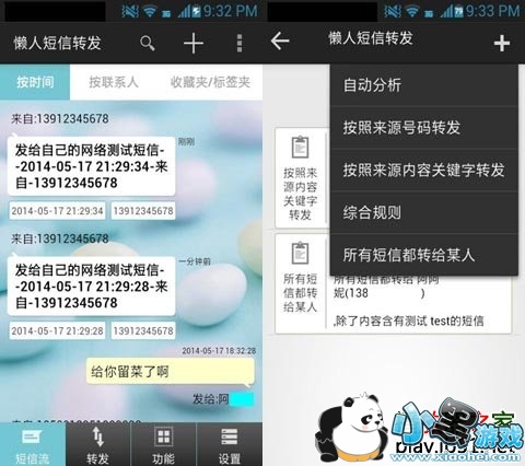 4》支持按照短信来源号码、内容关键字建立转发规则
