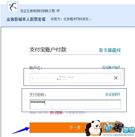 6、自动跳转到支付宝的支付中心。填入账号和支付密码,确定支付。