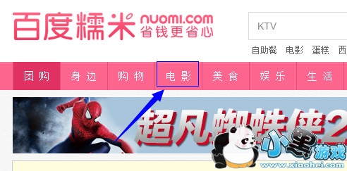1、打开百度糯米网,在主页上选择“电影”类别。